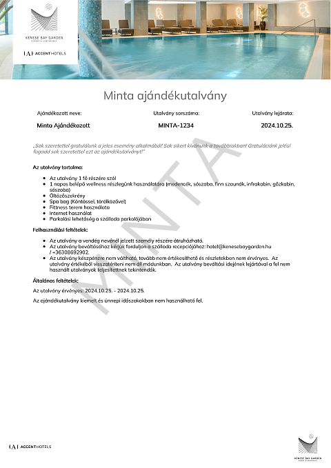 - Az utalvány 2 fő részére szól